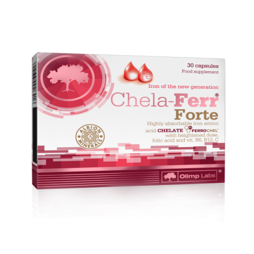 Chela-Ferr® Forte je dodatak prehrani koji sadrži Ferrochel® u obliku aminokiselinskog helata Albion® (željezo bisglicinat), visoko probavljivog i dobro podnošljivog oblika željeza u naprednom kompleksu sa folnom kiselinom i vitaminima: C, B6, B12.