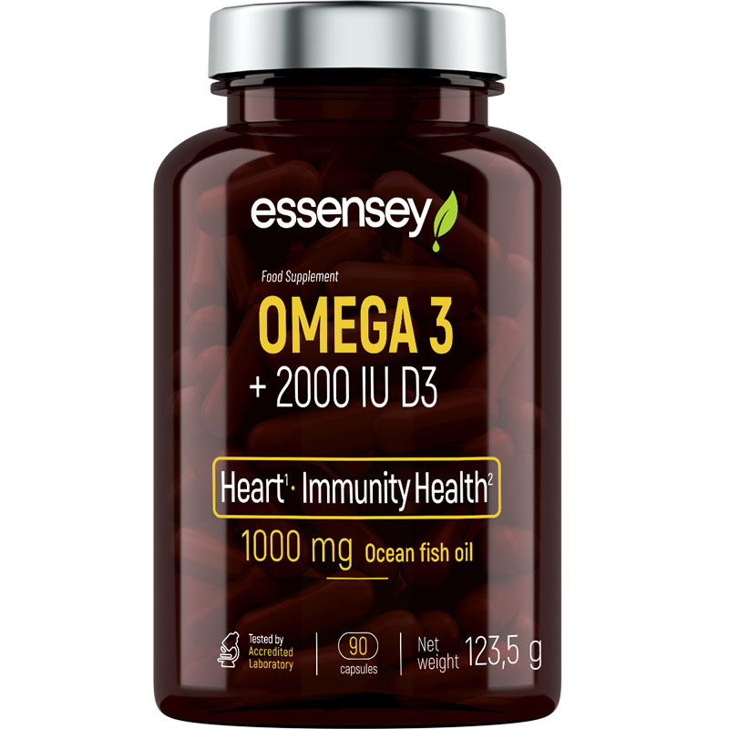 Dodatak prehrani ESSENSEY OMEGA 3 + D3 sadrži vitamin D koji pomaže u pravilnom funkcioniranju imunološkog sistema i održavanju zdravih kostiju.
