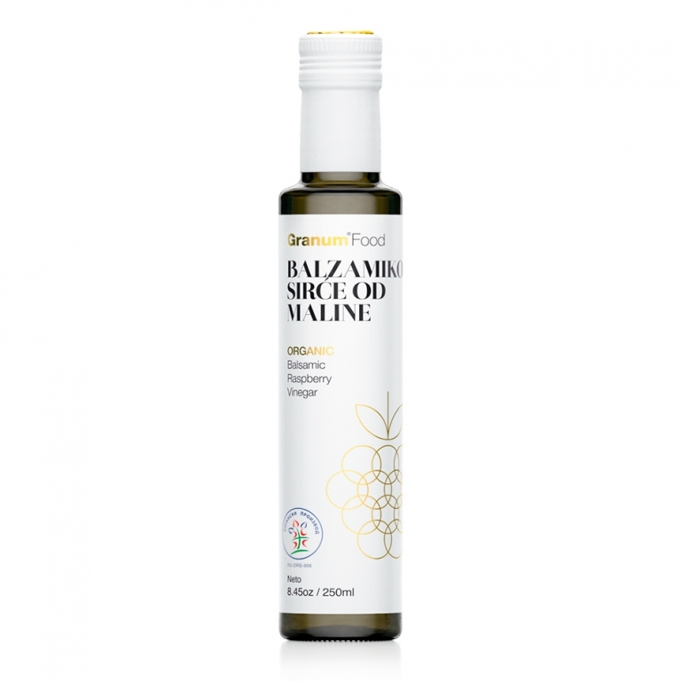 Sirće od maline, organskog porijekla i prefinjenog  ukusa. Dodavanjem organskog koncentrata maline i jabuke dobili smo balzamiko verziju.