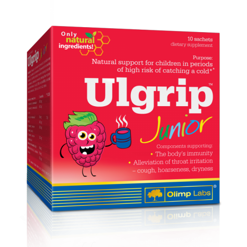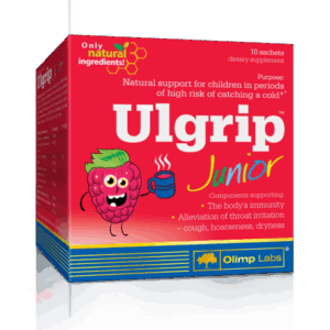 Ulgrip™ Junior zahvaljujući svojim sastojcima, pojačava imunitet organizma i ublažava iritaciju grla – kašalj, promuklost. Ovaj dodatak prehrani je u obliku ukusnog rastvorljivog praha koji se koristi za pripremu toplog napitka.